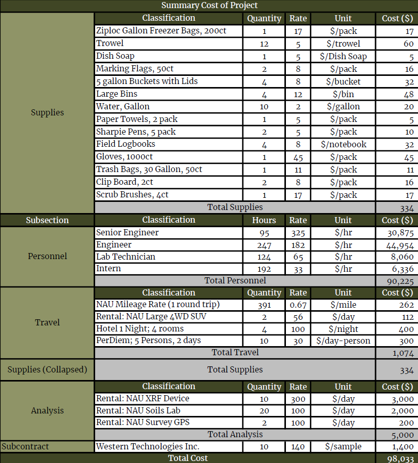 Project constraints included funding for the subcontracted ICP analysis, to account for this, the team has selected 10 samples to represent the site data.