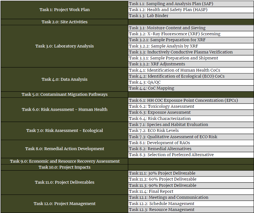 To determine any existing contaminants of concern for the site within the Site Investigation (SI), the team verified data through X-Ray Fluorescence (XRF) and Inductively Coupled Plasma (ICP) procedures.