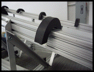 Tuned mass damping via spring was our actual intent. However, we decided to try a test with a interesting material called Sorbothane. We quickly found that this material greatly damped our structure. We cut the Sorbothane donuts in half and placed them on the angled members of the BBC. We allowed the material to over hang off the structure to dissipate energy.