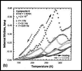SMA Cu-Al-Ni graph of internal friction and temperature showing damping capabilities of smart material |