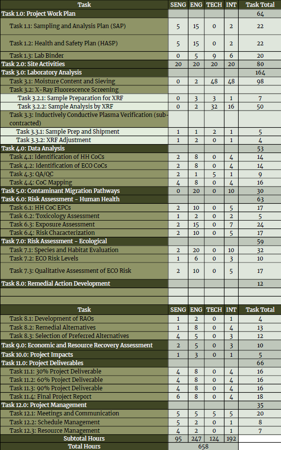 The table below is an outline of the tasks needing to be completed by the project team in order to fulfill the scope of services.