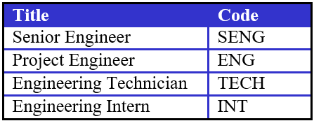 There are four staffing positions, including a senior engineer, a project engineer, an engineering technician, and an engineering intern. The total hours per task and personnel are summarized below in the table below. The projected total for this project is 660 hours.