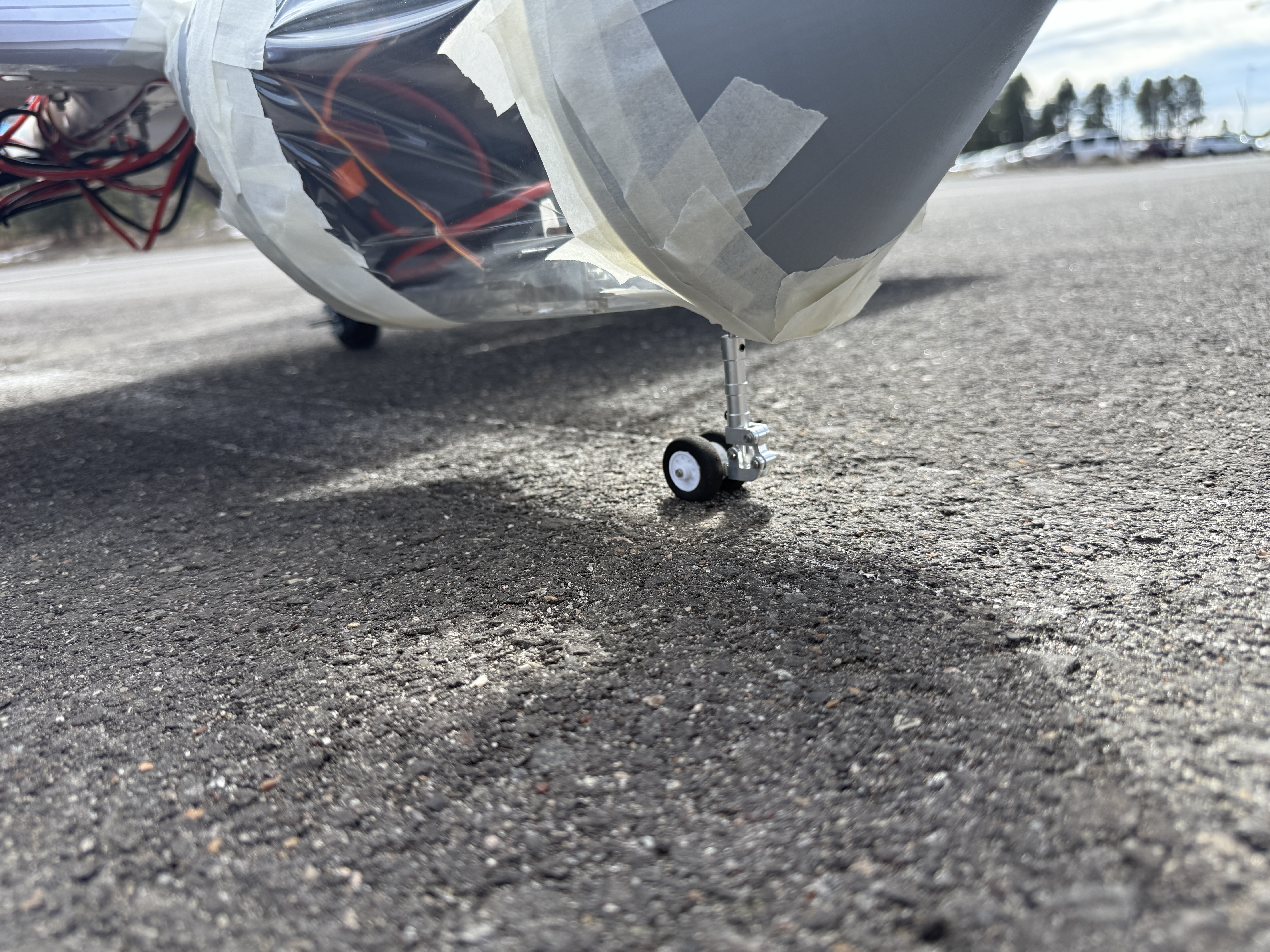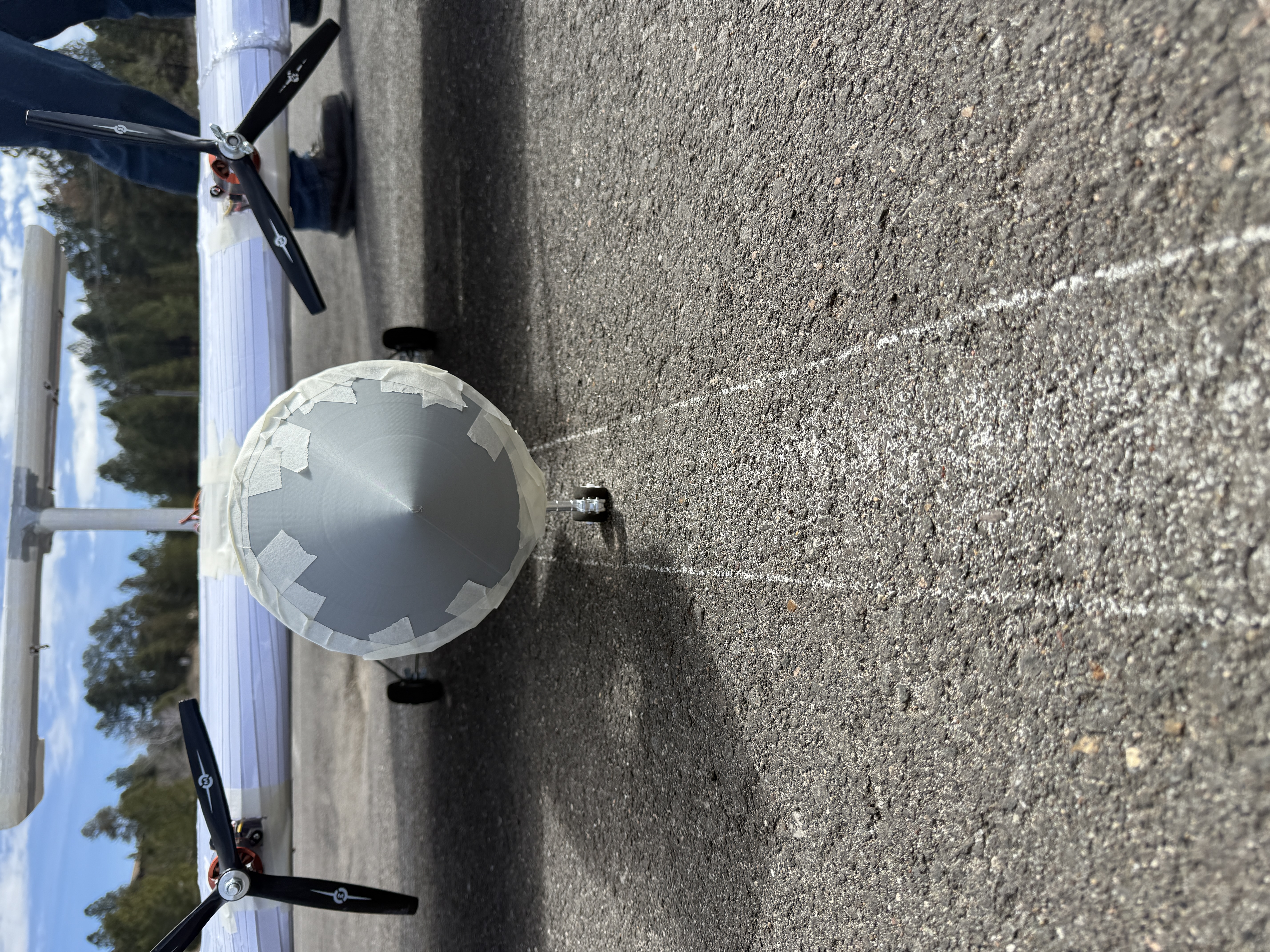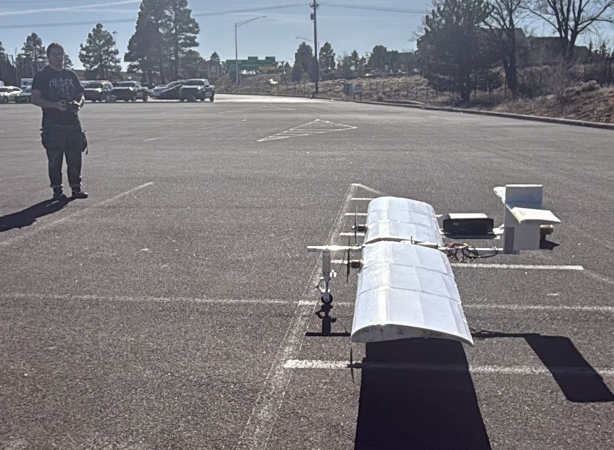 Last prototype of fall semester, with the addition of control surfaces. We wanted to test how the control surfaces impact flight. Unfortunately we were unsucessful at leaving the ground due to poor coverage from Monokote.