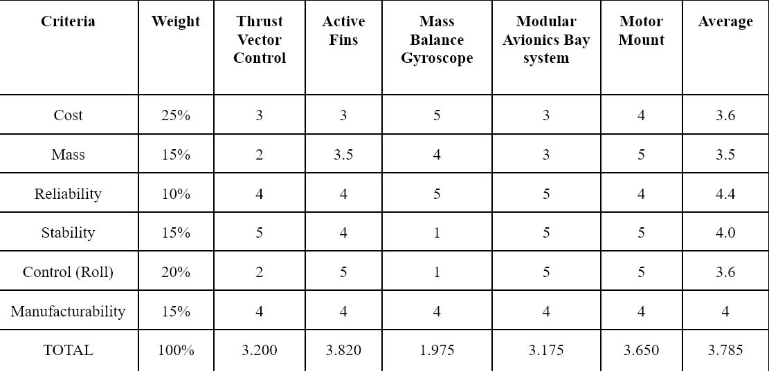 Report 1 Report 2 (web access-only due to website filesize limitations)This is the most up to date decision matrix that set the precedent of us utilizing active fins for our design. This is for a quick preview, and we highly recommend referring to Report 2 for more details on the concept selection phase.